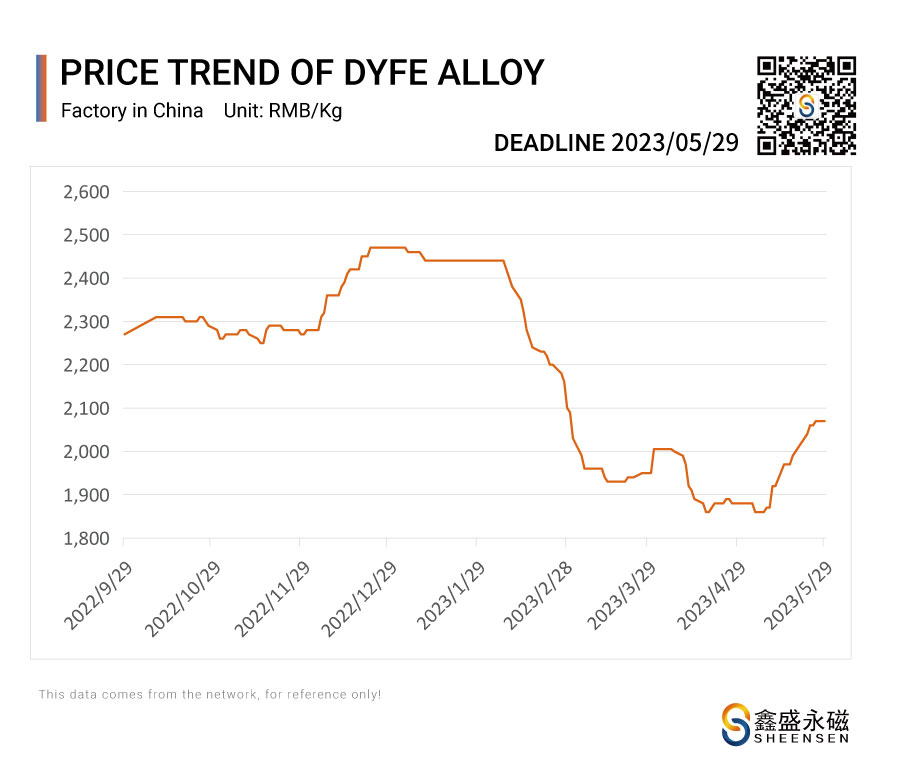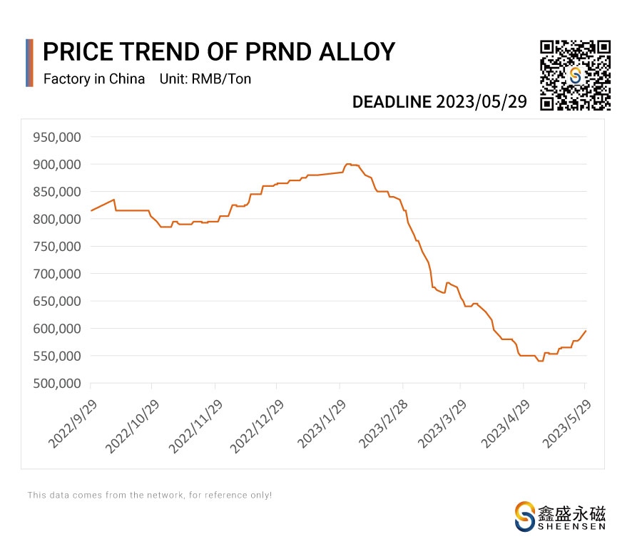 On May 29, 2023, Sheensen Magnetics will share the price trend information of rare earth raw materials for your reference when purchase rare earth permanent magnet materials and magnet assembly.