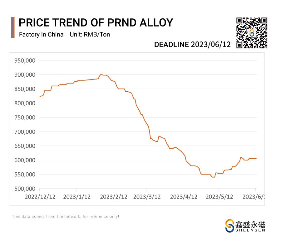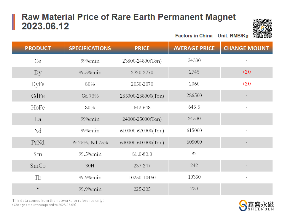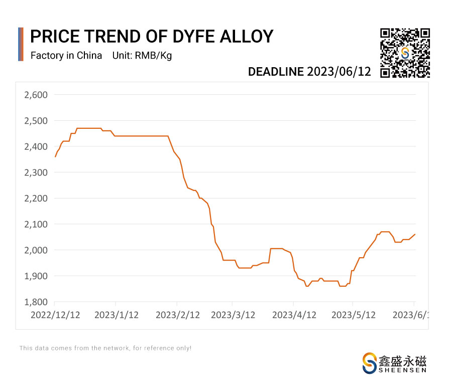 On June 12, 2023, Sheensen Magnetics will share the price trend information of rare earth raw materials for your reference when purchase rare earth permanent magnet materials and magnet assembly.