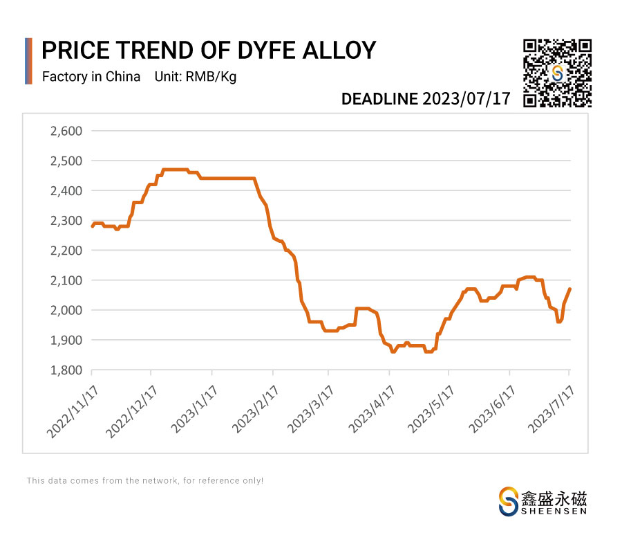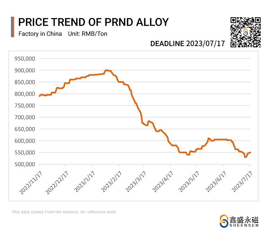 On July 17, 2023, Sheensen Magnetics will share the price trend information of rare earth raw materials for your reference when purchase rare earth permanent magnet materials and magnet assembly.