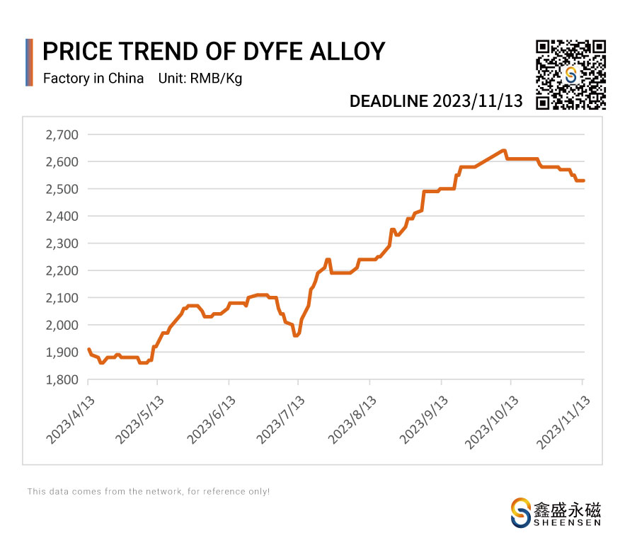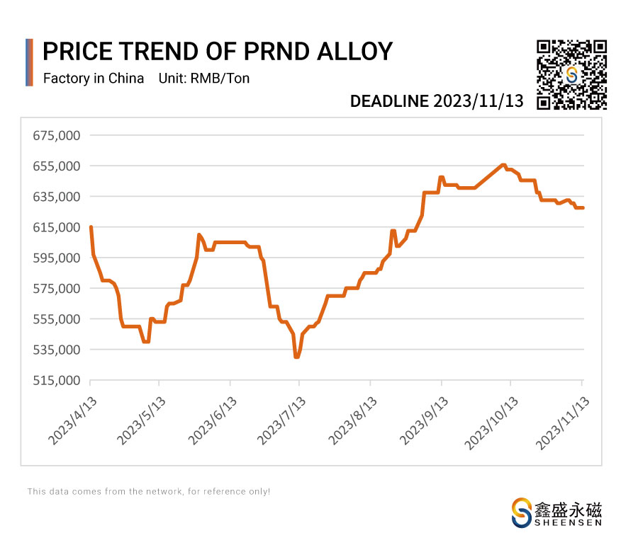 On November 13, 2023, Sheensen Magnetics will share the price trend information of rare earth raw materials for your reference when purchase rare earth permanent magnet materials and magnet assembly.