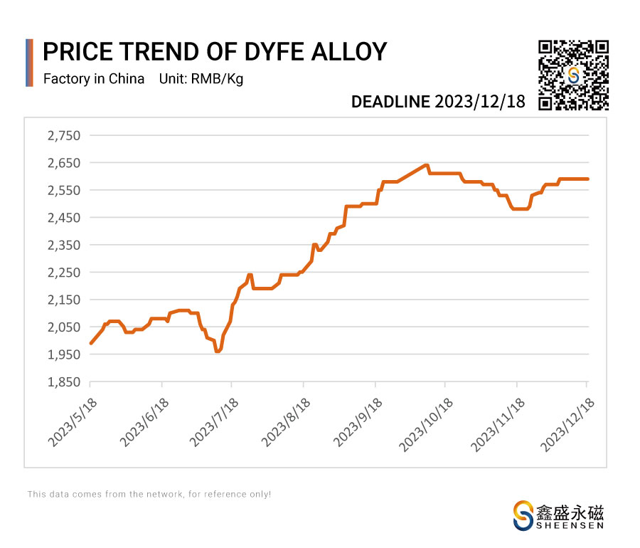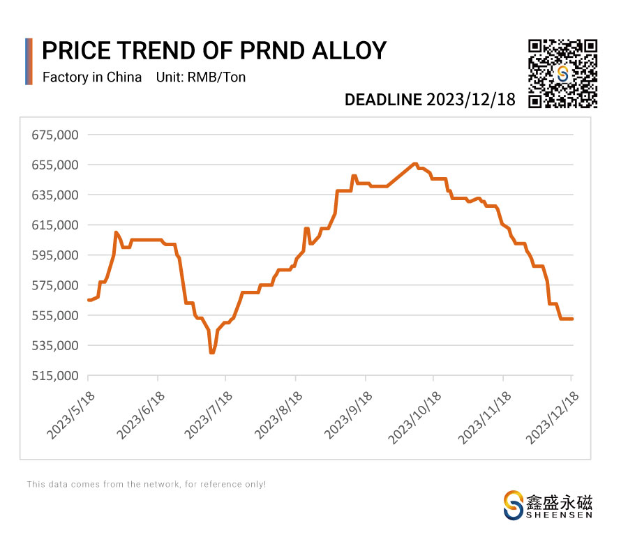On December 18, 2023, Sheensen Magnetics will share the price trend information of rare earth raw materials for your reference when purchase rare earth permanent magnet materials and magnet assembly.