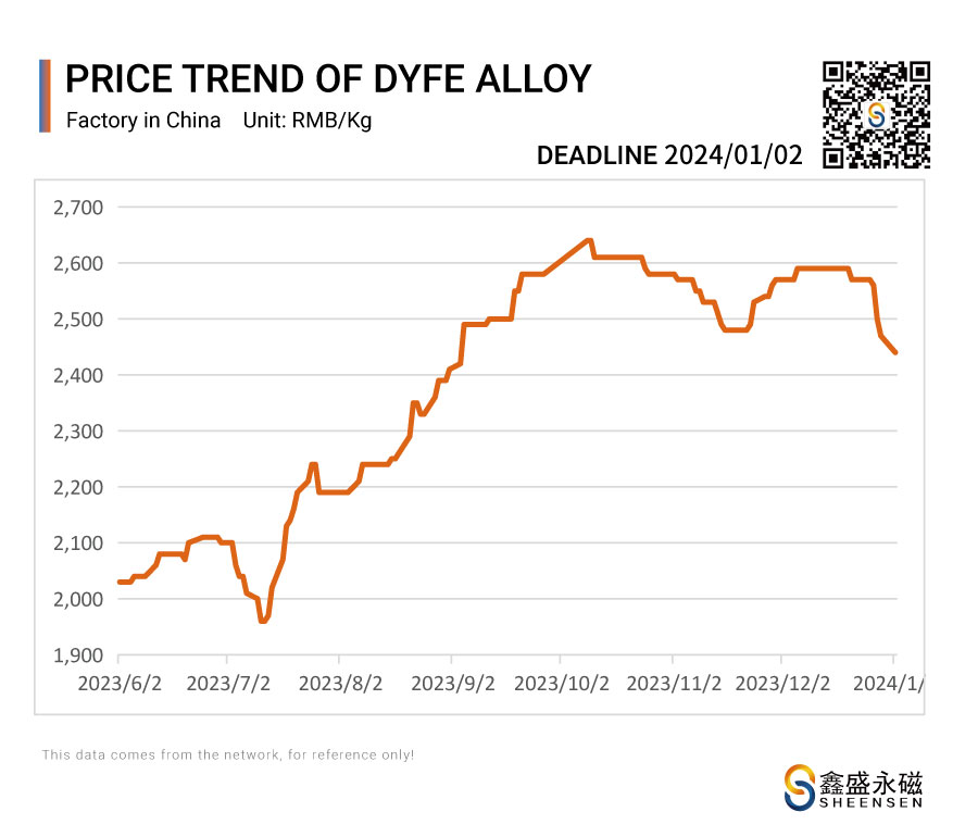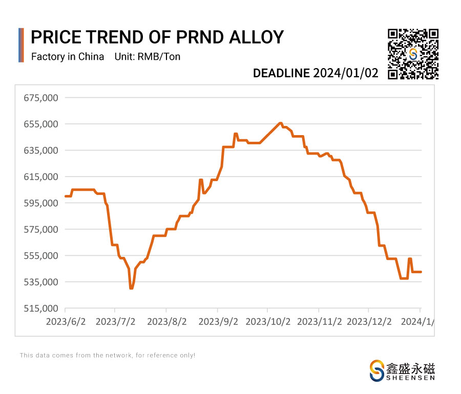 On January 02, 2023, Sheensen Magnetics will share the price trend information of rare earth raw materials for your reference when purchase rare earth permanent magnet materials and magnet assembly.