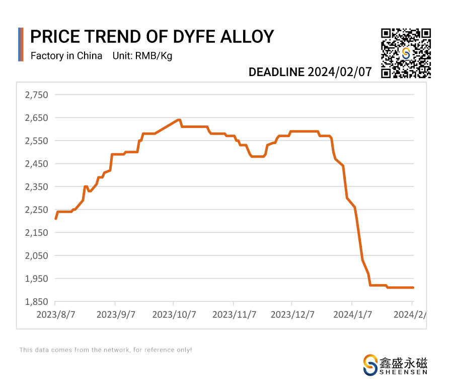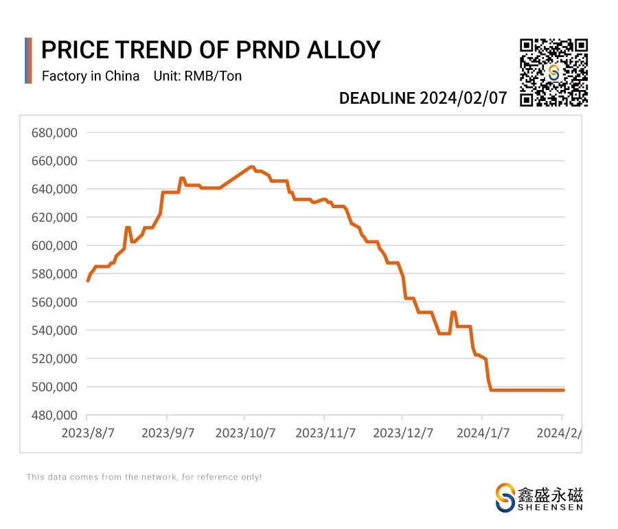 On February 07, 2024, Sheensen Magnetics will share the price trend information of rare earth raw materials for your reference when purchase rare earth permanent magnet materials and magnet assembly.
