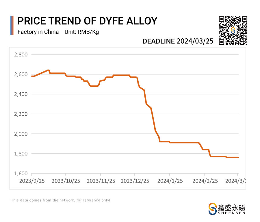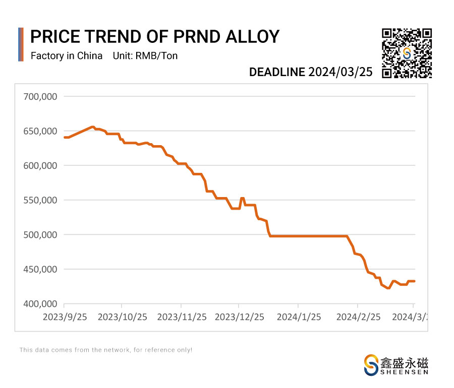 On March 25, 2024, Sheensen Magnetics will share the price trend information of rare earth raw materials for your reference when purchase rare earth permanent magnet materials and magnet assembly.