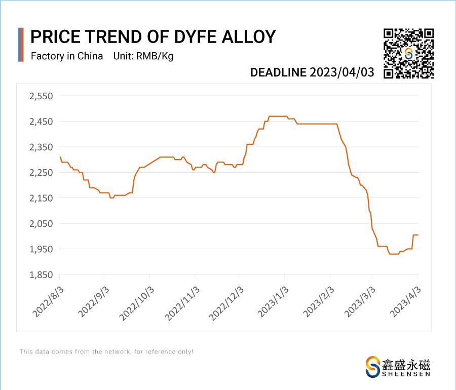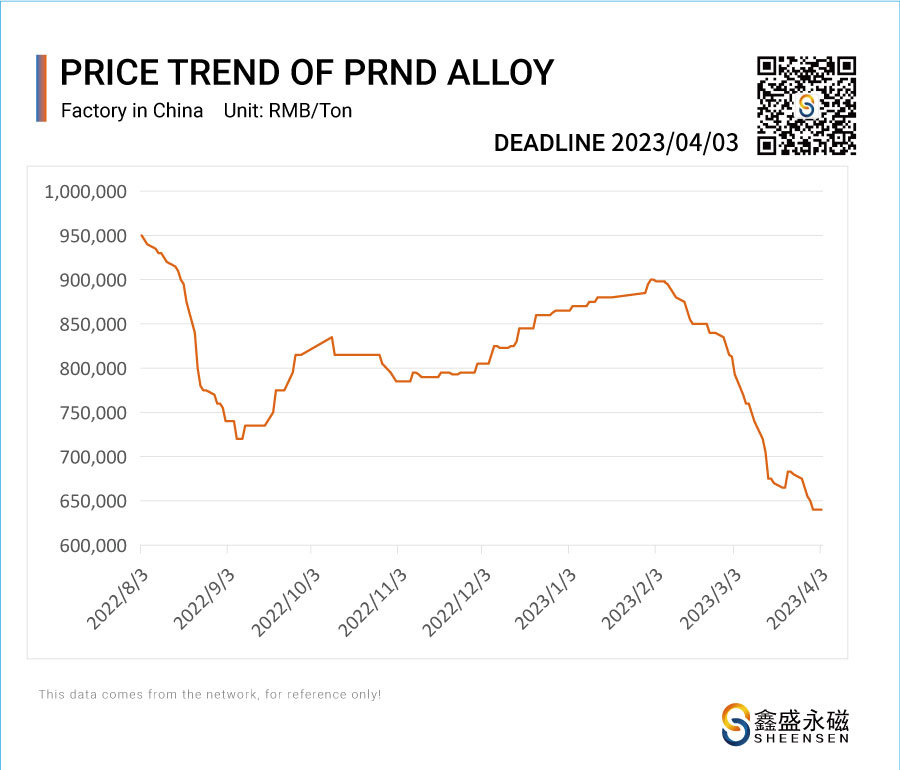 On April 03, 2023, Sheensen Magnetics will share the price trend information of rare earth raw materials for your reference when purchase rare earth permanent magnet materials and magnet assembly.
